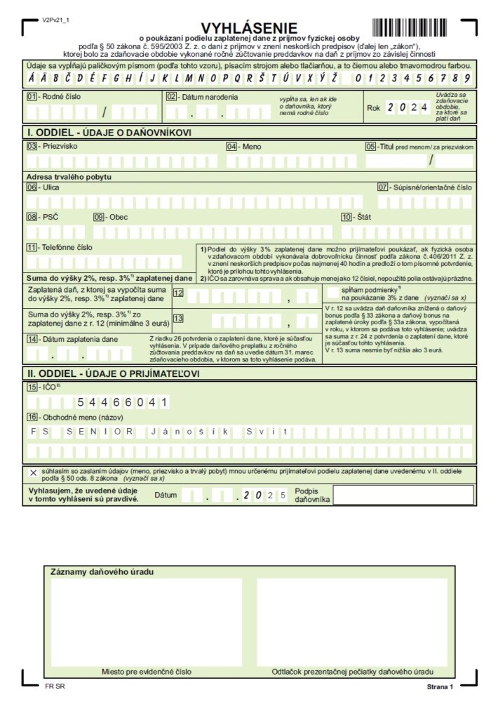 Aj tento rok by sme Vás chceli poprosiť o príspevok 2% zaplatenej dane z prijmov pre podporu nášho súboru.